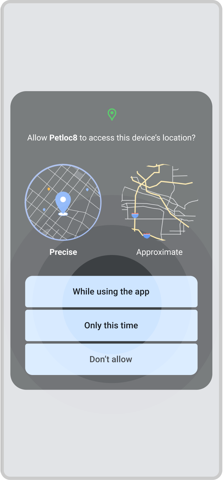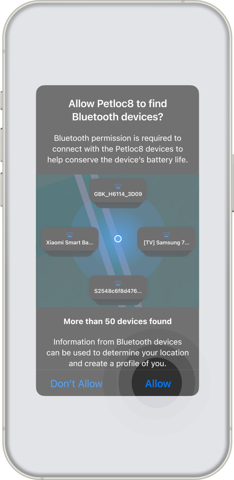 Petloc8 needs Bluetooth permission to enhance location accuracy and extend battery life.